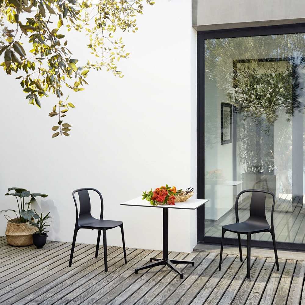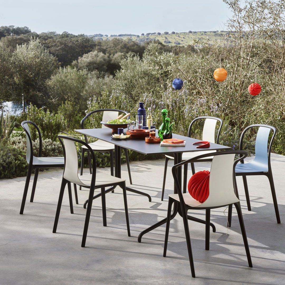 Disegnata da Ronan & Erwan Bouroullec, la sedia Belleville di Vitra è composta da due componenti: telaio strutturale e scocca. L’elegante telaio strutturale forma le linee calligrafiche di schienale e gambe della sedia, ed è disponibile senza braccioli. La scocca sottile si assottiglia verso l’alto dalla seduta verso lo schienale. La scocca è disponibile in varie finiture: in plastica, in legno multistrato curvato, rivestita in pelle o in tessuto. Questa disponibilità di finiture le permette di essere adatta a tutti i contesti. La Belleville Chair in plastica è adatta anche per uso esterno. Le versioni in plastica ed in legno sono anche impilabili.