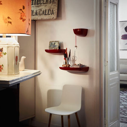 Corniches di Erwan Bouroullec per Vitra può avere funzione di una mensola a muro o oggetto decorativo. Può essere utilizzato per poggiare le chiavi vicino alla porta d’ingresso, un punto dove poter mettere tutto ciò di cui abbiamo bisogno a portata di mano in bagno oppure un supporto per piccoli oggetti. Corniches sono realizzati in plastica di alta qualità di diversi colori, in tre differenti misure e forme. Staffa per parete: poliammide.