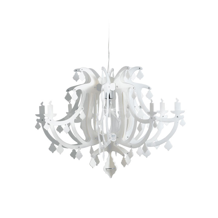 Ginetta è una lampada a sospensione progettata da Nigel Coates per il brand Slamp. Evoluzione digitale del classico candeliere a 8 bracci, sontuosa nella sua contemporaneità , Ginetta si sviluppa attorno a una fonte luminosa centrale e crea riflessi eleganti e raffinati. Si intona perfettamente alle location più attuali così come alle dimore più aristocratiche. Disponibile sia nelle versioni in Opalflex® che metal e prisma, con cilindro diffusore in policarbonato iridescente.