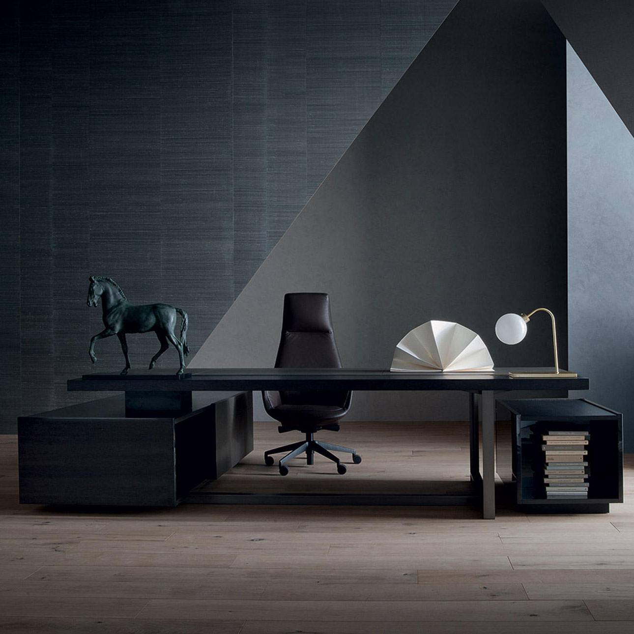 Jobs è un sistema direzionale di scrivanie, mobili e tavoli riunione di Poltrona Frau ideato da Rodolfo Dordoni. Tre sono le versioni di scrivania: Easy Desk, Executive Desk e President Desk, ognuna corredata di numerosi accessori e varianti. La scrivania Jobs President, disponibile anche nella versione Large, è dotata di un mobile contenitore realizzato in fibra di legno a media densità e impiallacciato in Rovere Piombo o Tabacco nella finitura lucida e nella finitura opaca per il top.