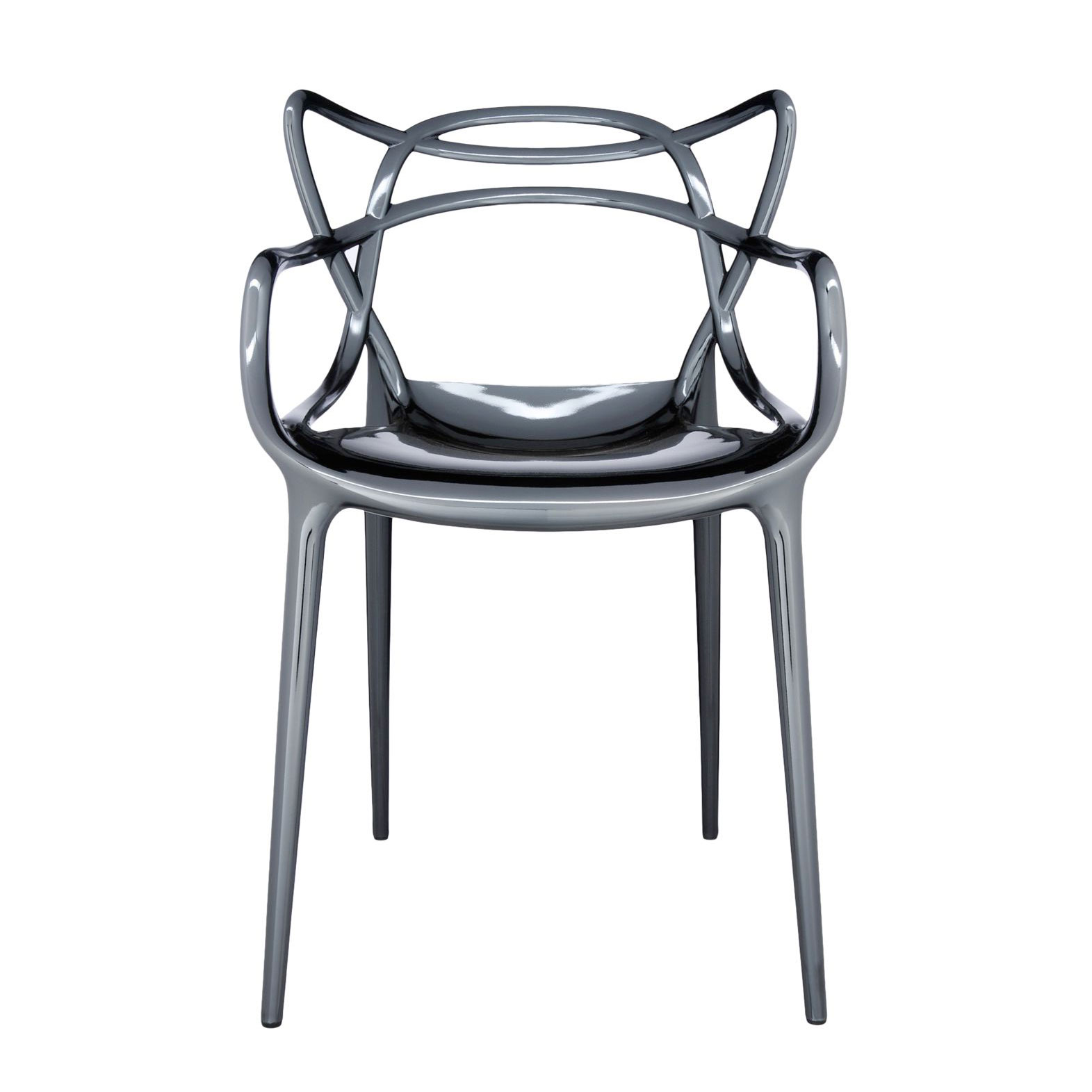 La sedia Masters di Kartell è un acuto omaggio a tre sedie-simbolo, rilette e reinterpretate dal genio creativo di Starck. La “Serie 7” di Arne Jacobsen, la “Tulip Armchair” di Eero Saarinen e la “Eiffel Chair” di Charles Eames intrecciano le inconfondibili silhouette in un ibrido sinuoso, per dare vita a una fusione di stili originale e accattivante. Leggera, pratica e impilabile, Masters può essere utilizzata anche all’esterno. Per un effetto più prezioso è proposta anche in sorprendenti finiture metallizzate. La sedia Masters è stata insignita del prestigioso “Good Design Award 2010” rilasciato dal Chicago Athenaeum – Museum of Architecture and Design, e del Red Dot Design.