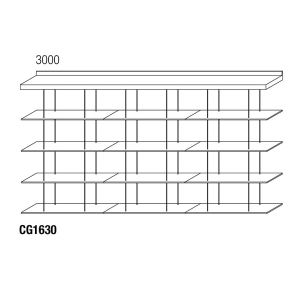 La leggerezza della trasparenza in un volume fatto di aria. Il piano di sostegno, viene fissato a muro nella parte superiore della libreria, al quale sono poi agganciati dei montanti metallici che a diverse altezze portano delle tacche graduate. In rapporto alle tacche vengono posizionati i ripiani, sostenuti da agganci invisibili. Il piano di sostegno e i ripiani sono in finitura alluminio anodizzato, con bordo in multistrato.