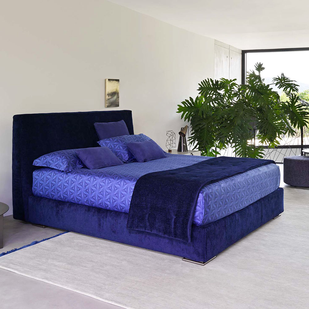 Letto matrimoniale dalla testata particolarmente alta e morbida, quasi un enorme cuscino pronto ad accogliere e ad alleviare ogni tensione. È la morbidezza il punto di forza di MyPlace che, come vuole il nome, nasce per diventare il “tuo spazio” personale e privilegiato di comfort e benessere.
