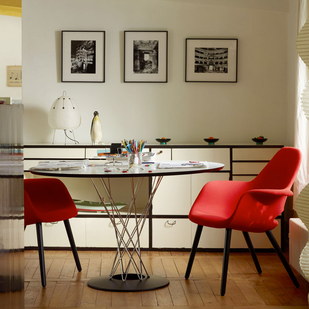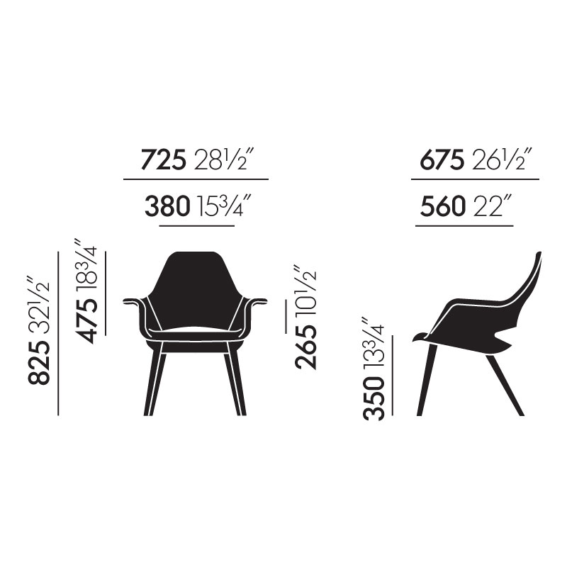 Charles Eames ed Eero Saarinen creano Organic Chair nel 1940 per partecipare all’ Organic Design in Home Furnishings, un concorso organizzato dal Museum of Modern Art di New York. La piccola sedia da lettura offre comfort eccellente, grazie alla sua scocca in schiuma poliuretanica con rivestimento in tessuto ed è disponibile anche in una versione con schienale più alto chiamata Organic Highback.