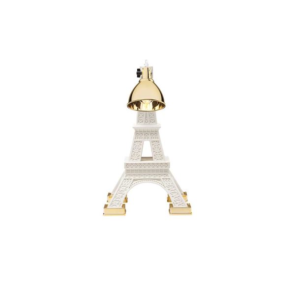 Paris M, disegnata da Studio Job per Qeeboo, è una lampada da tavolo a forma di Torre Eiffel, ideale per celebrare l’iconica Vie en Rose con un twist in ogni angolo della casa. Dotata di un diffusore orientabile a cupola in ottone.