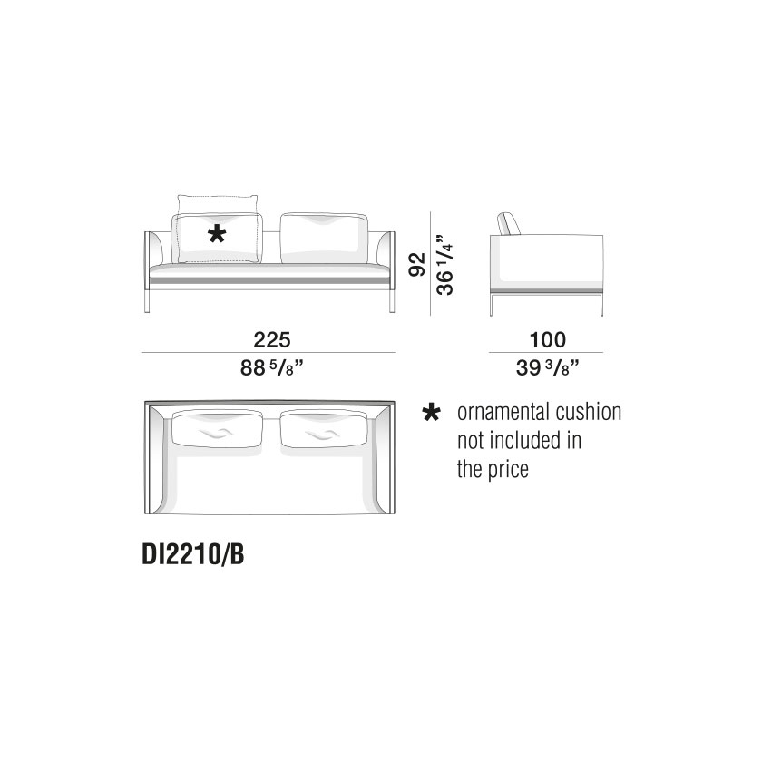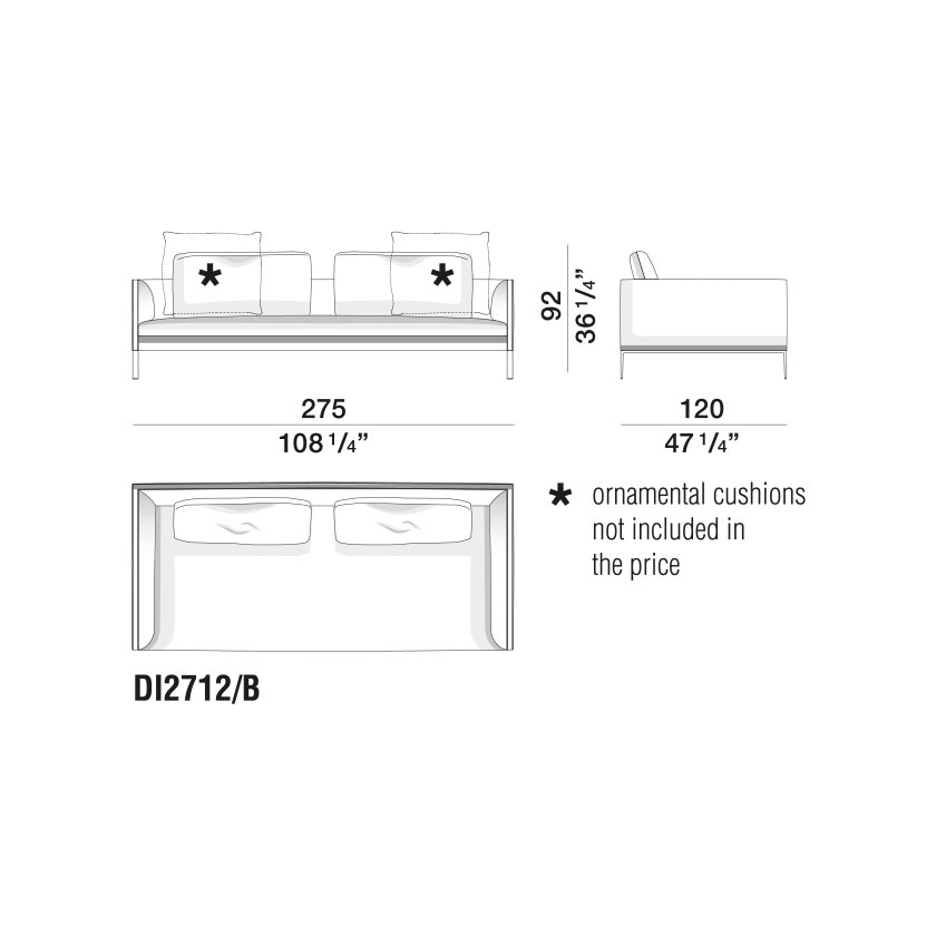 Cuscini schienale: Fibra poliestere riciclata. Fodera in cotone 100%.
