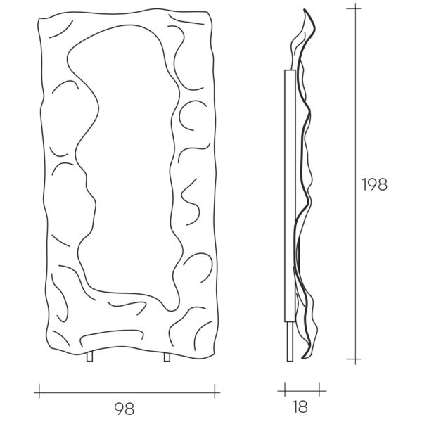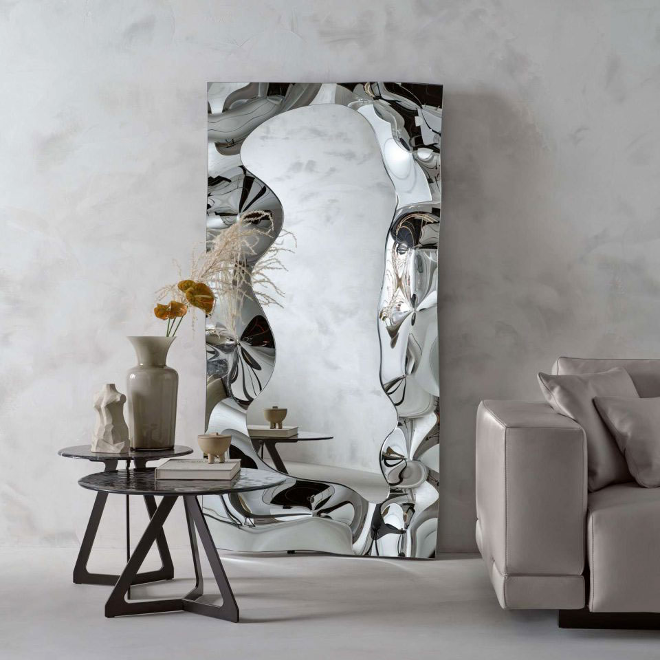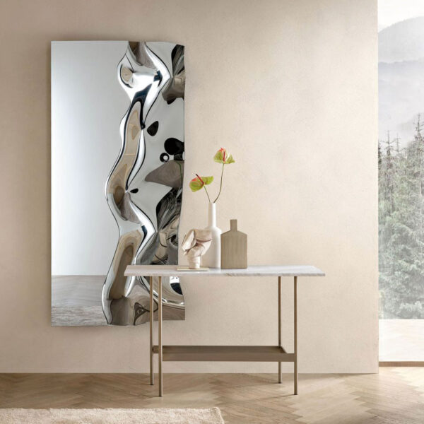 Specchio da parete in vetro fuso da 6 mm retro argentato, specchio piano da 5 mm. Telaio posteriore in metallo verniciato.