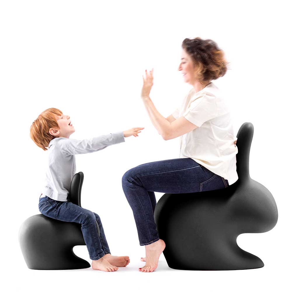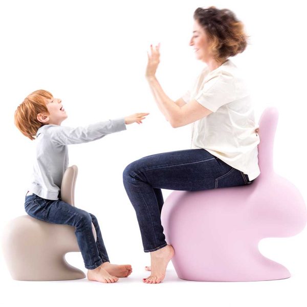 Rabbit Chair Baby è l’originale sedia a forma di coniglio di Qeeboo in una versione più piccola, pensata per il divertimento dei bambini. Può essere utilizzato per sedersi appoggiandosi alle orecchie del coniglio o dalla parte opposta, cavalcandolo e appoggiando gli avambracci sulle sue orecchie.