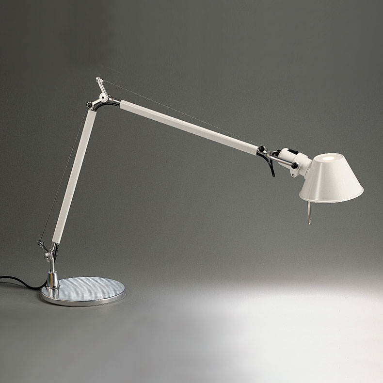 Comparsa nel 1987,è stata subito un best seller, premiata con il compasso d’Oro. È la famosissima lampada da tavolo Tolomeo, disegnata da Michele De Lucchi e Giancarlo Fassina per Artemide. Struttura a bracci mobili in alluminio lucidato. Diffusore orientabile in alluminio anodizzato opaco. Base in alluminio lucidato. In alternativa disponibile anche con morsetto o supporto fisso per scrivania. Disponibile in alluminio, bianco e nero nella versione alogena (lampadina non inclusa) o alluminio nella versione Led (integrato non sostituibile, dimmerabile).
