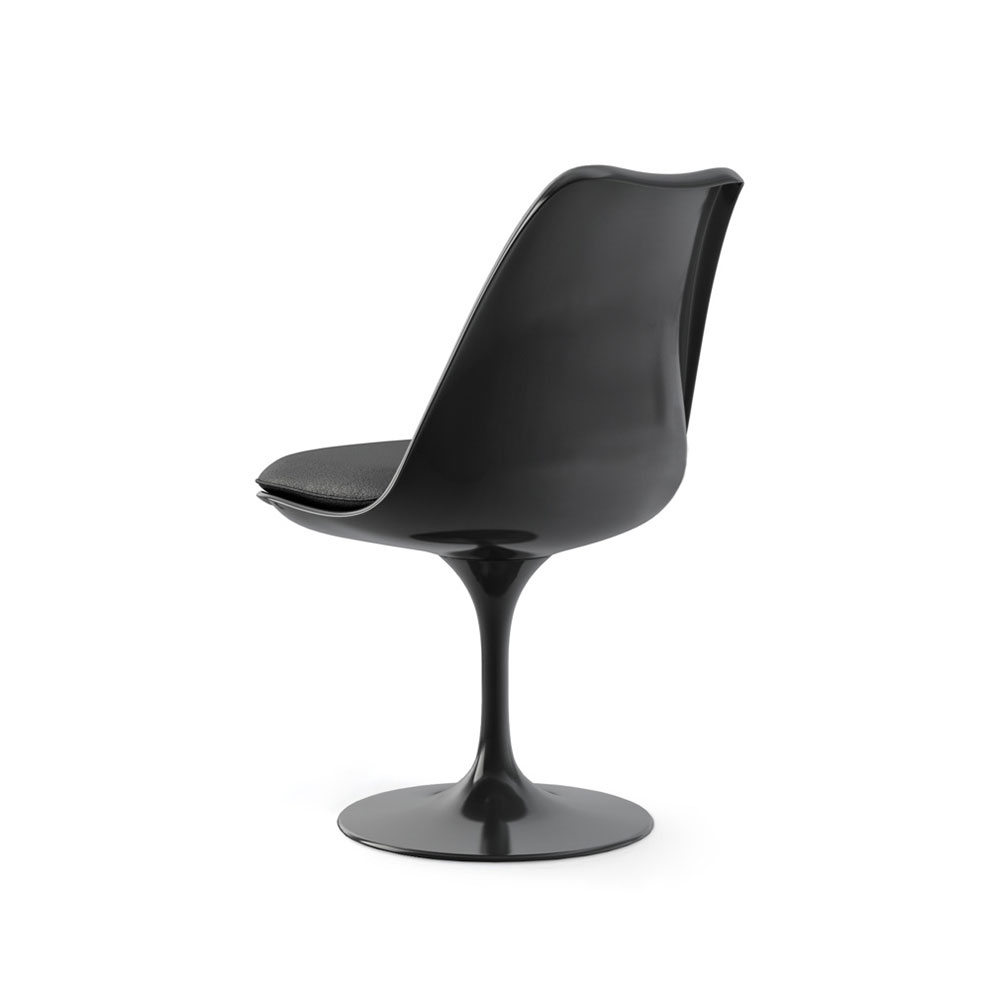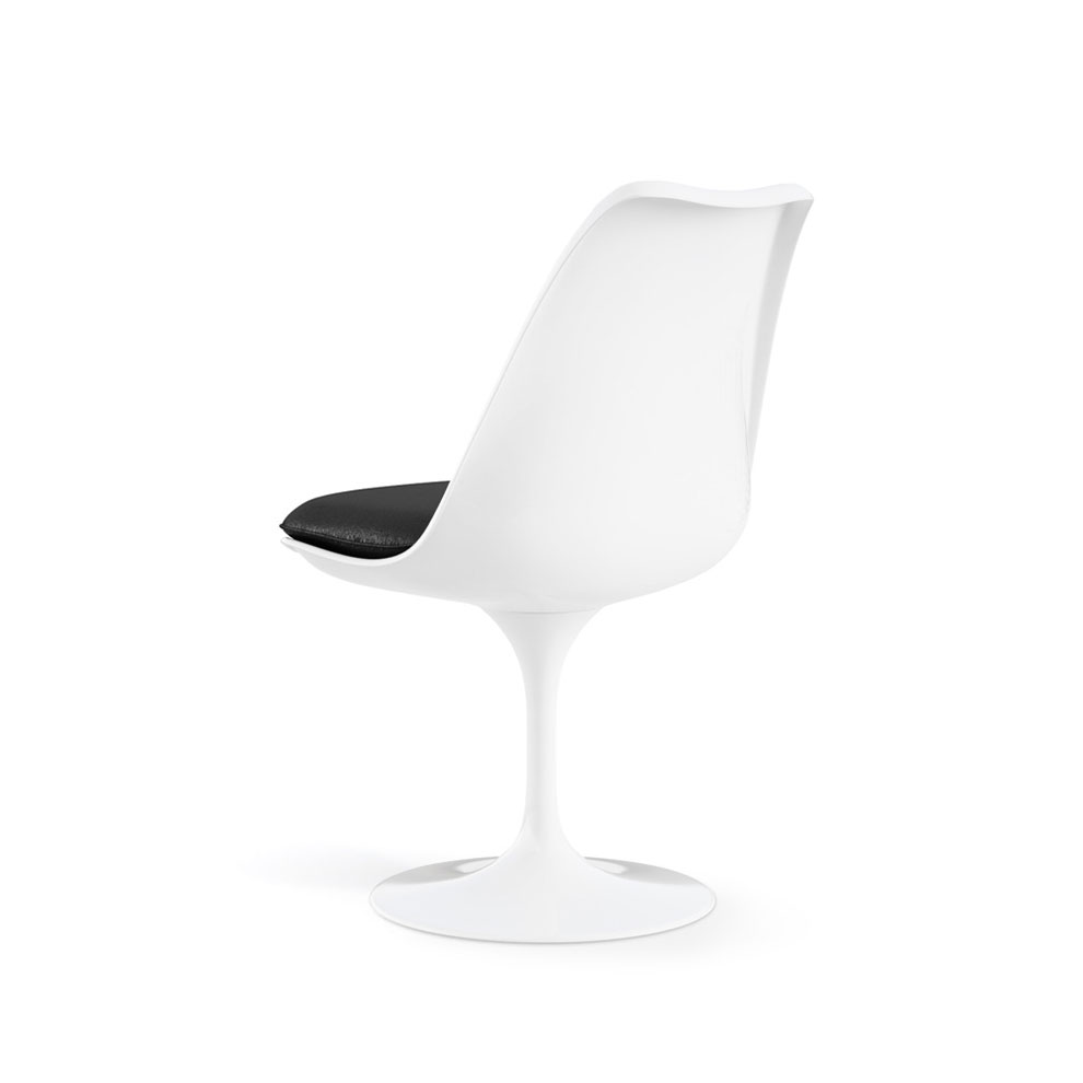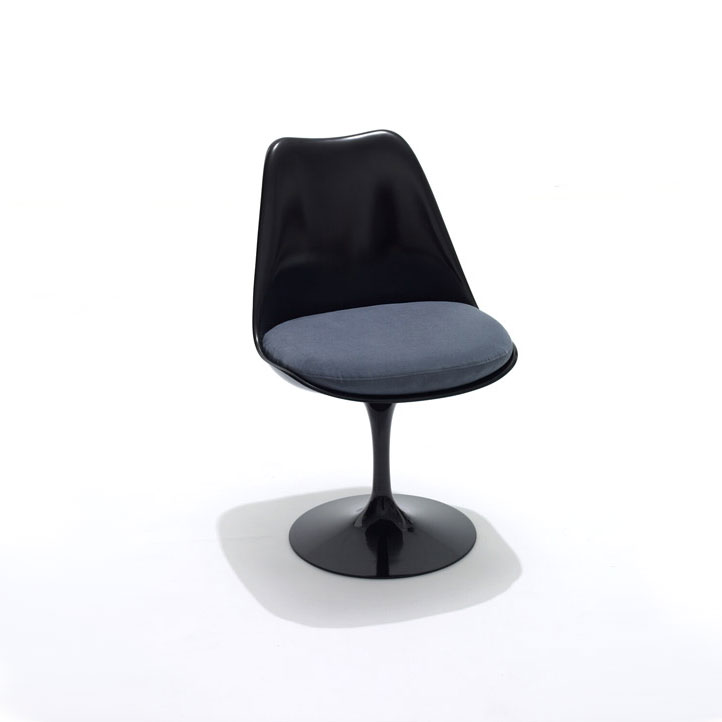 Tulip è una sedia di Eero Saarinen per Knoll. Base girevole o fissa in alluminio modellato pesante e verniciato, scocca seduta in vetroresina. Tulip è una sedia che è stata ideata nel 1957, considerata tra le icone del design moderno. Tulip rompe gli schemi della sedia classica a quattro gambe, come del resto il materiale di cui è costituita, con l’avvento delle materie plastiche in quegli anni, questa fu una delle più importanti creazioni dell’arredo domestico.